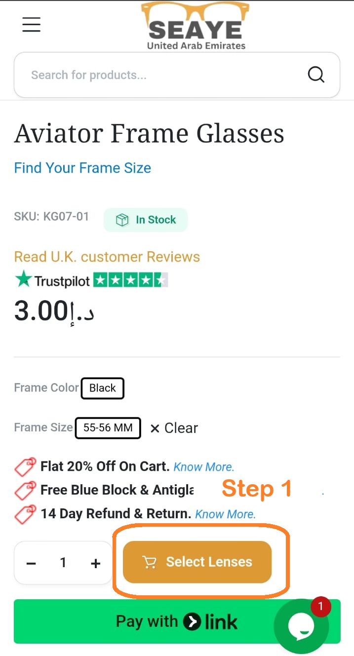 Step 1: Select the frame you want & Once you enter frame page. You will see “Select Lenses” button below. See picture below